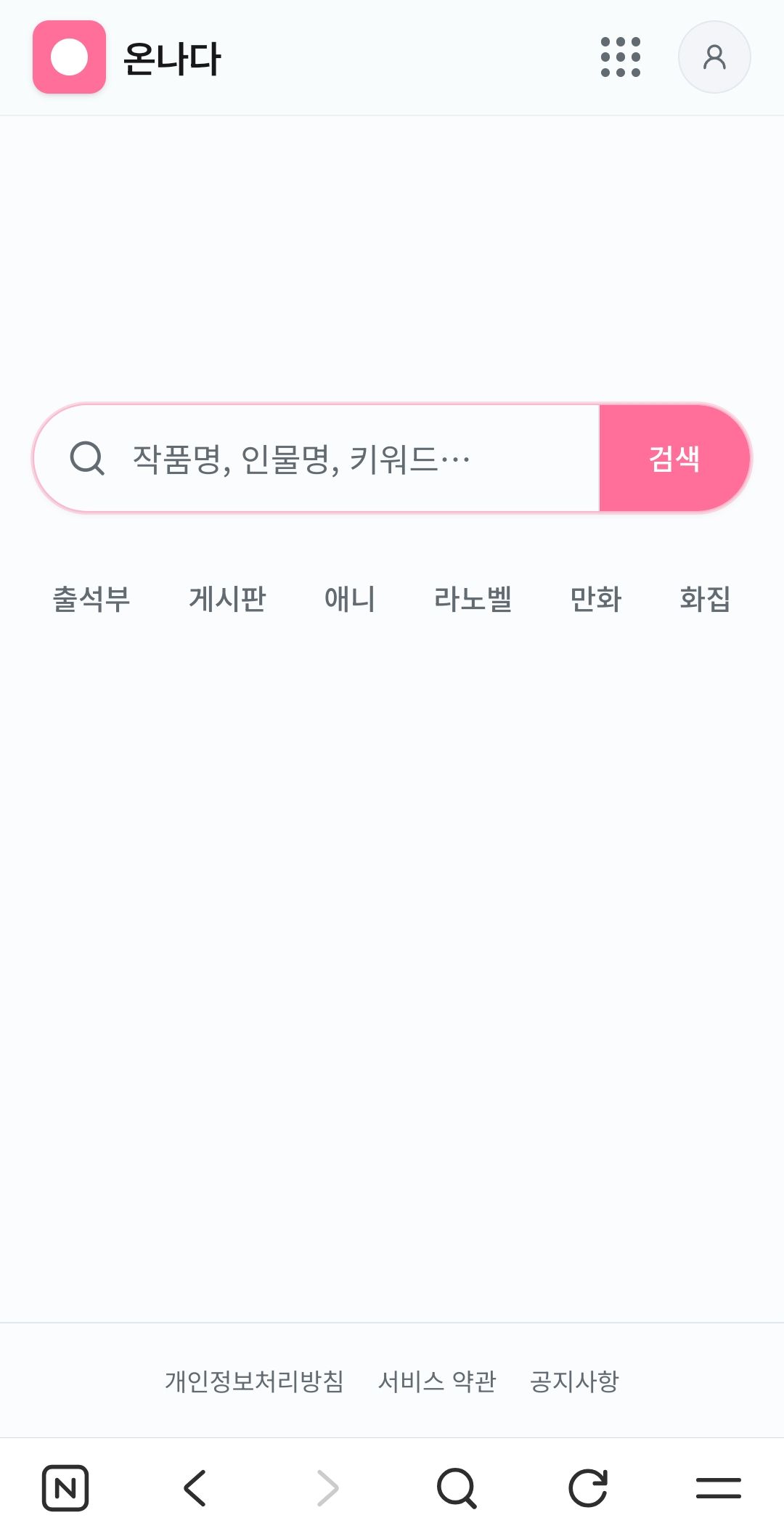 분명 어제까지만 해도 온나다 홈페이지 디자인 바뀌지 않은 걸로 기억하는데요.