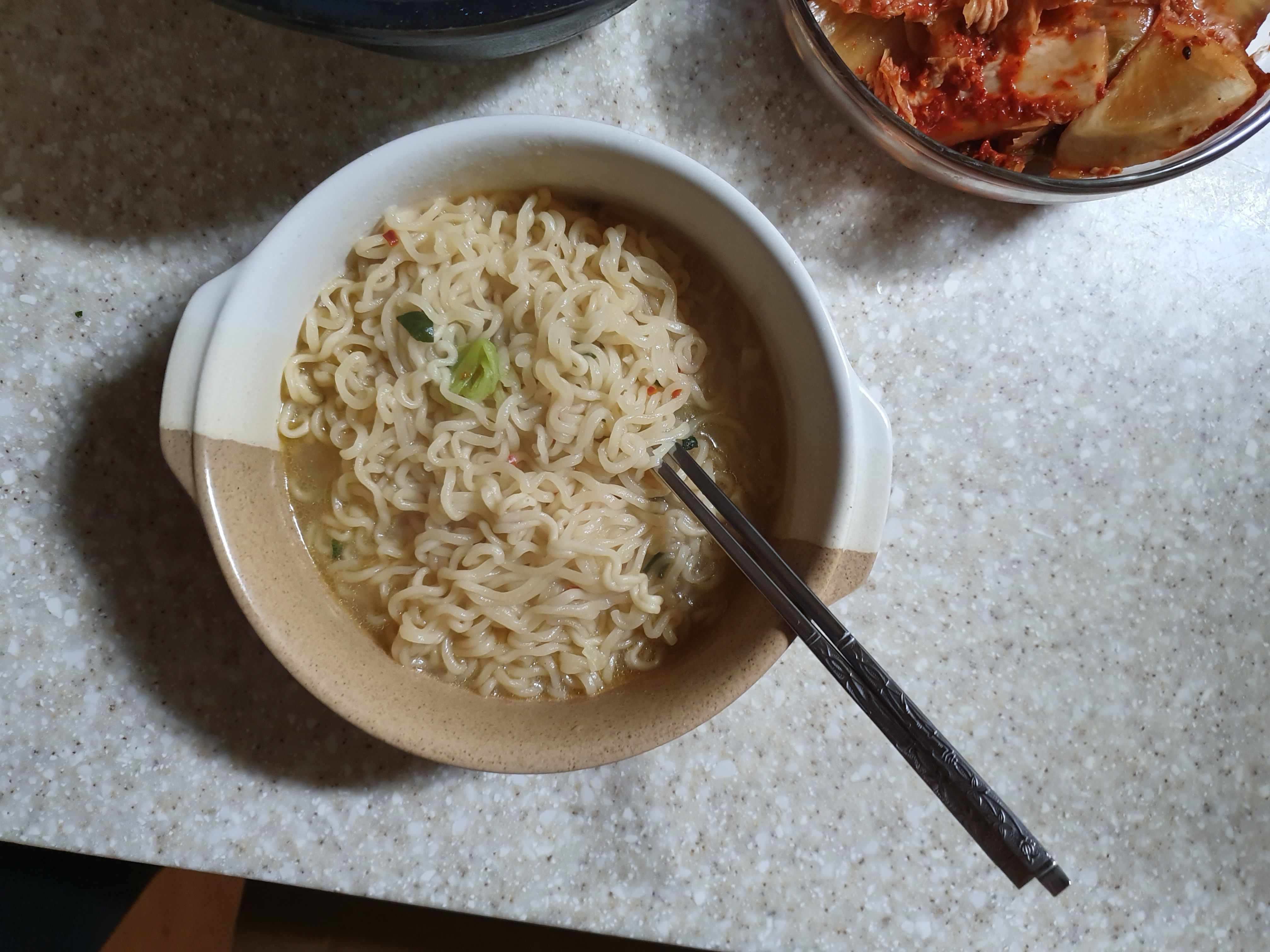 국물이 닭 육수같고 건더기 중에서 특별한 건 청경채같은 야채랑 닭가슴살(?)이 고명이었습니다.