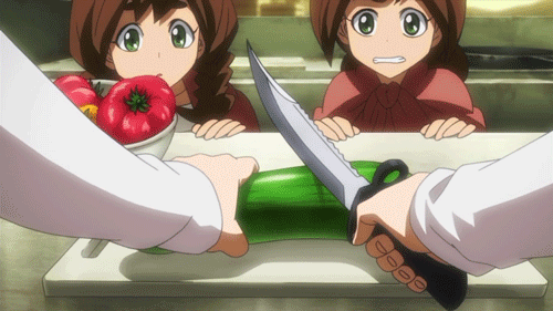 야채를 자를 때는 고양이 손이야~