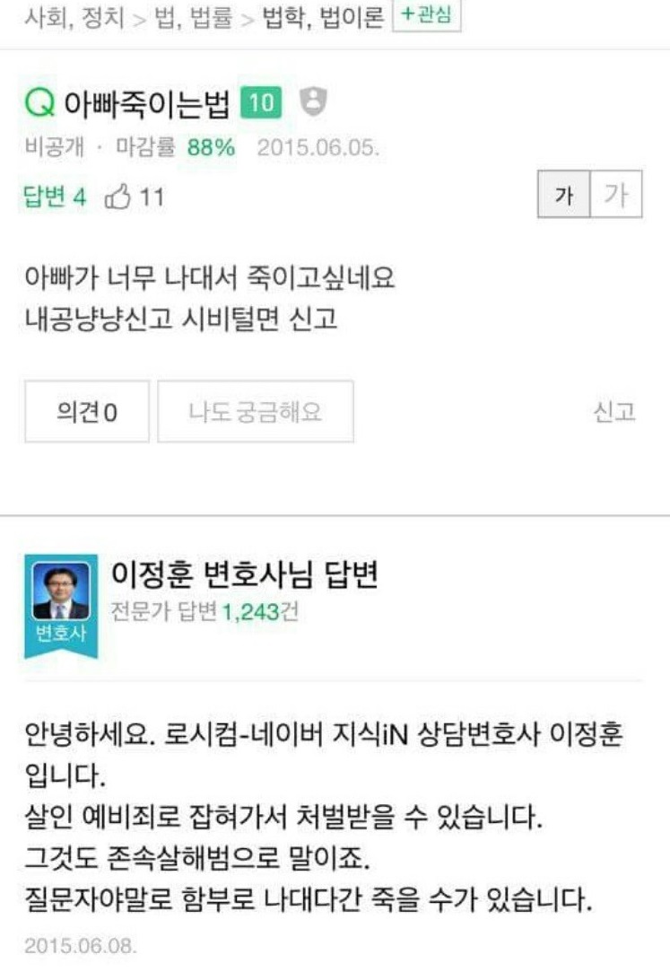 답변자가 변호사라니ㅋㅋ 그것보다 답변 내용이 더 무섭네요ㄷㄷ