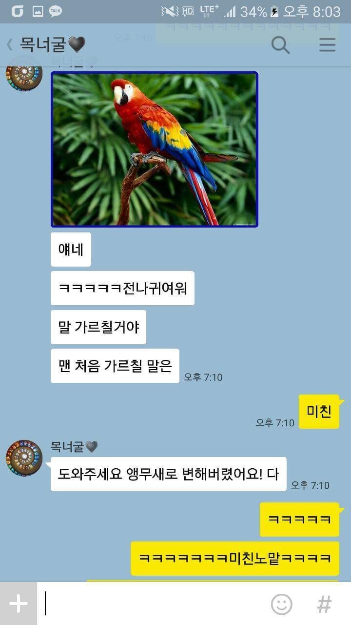 - 일반앵무새 키우면 가장 먼저 가르칠 말[1]린스갓조회 1002추천 1