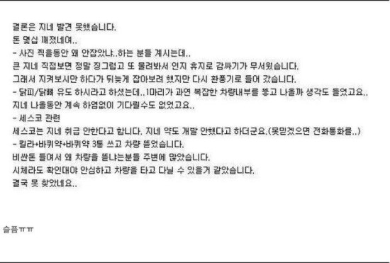 | 일반 | 지네 때문에 차를 뜯은 남자[2] | 린스갓 | 2016-06-18 13:17 | 962 | 1 |