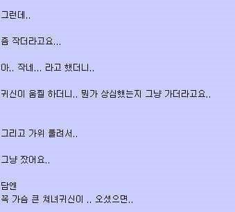 | 일반 | 처녀귀신님 가슴 만지게 해주세요.[2] | 린스갓 | 2016-07-01 12:41 | 2140 | 1 |