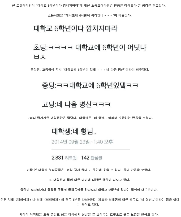 - 일반대학교 6학년에 대한 초중고대학생 별 반응[1]린스갓조회 2955추천 1