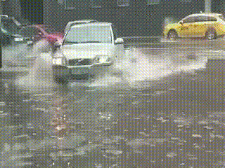 홍수가 난 거리에서 냥이를 구했다
