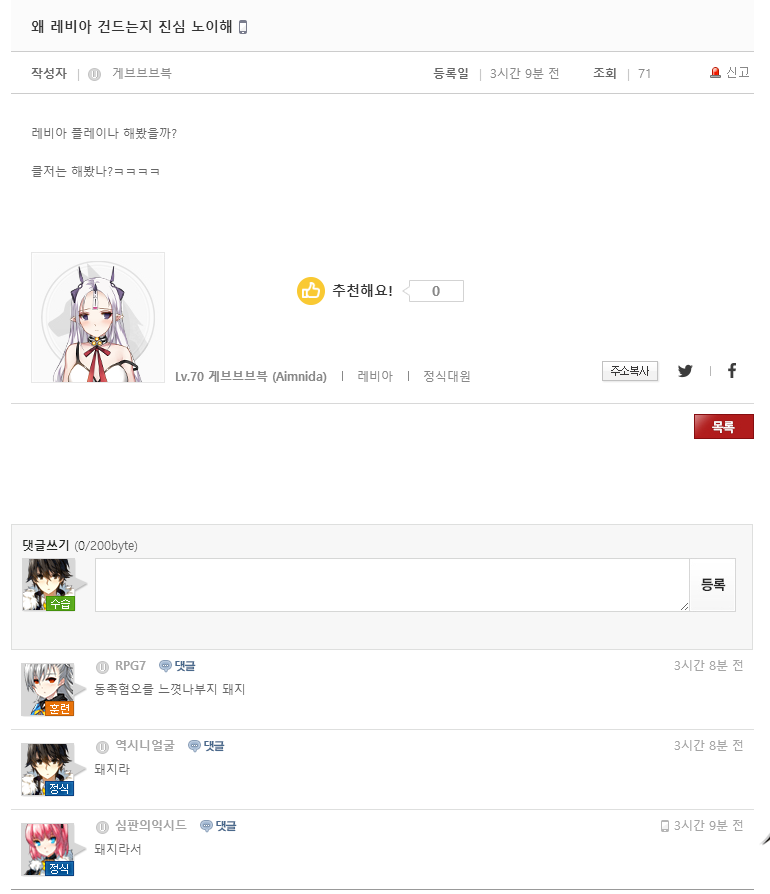 - 일반레비아를 왜 건드는지 이해를 못한 유저[0]린스갓조회 1345추천 0