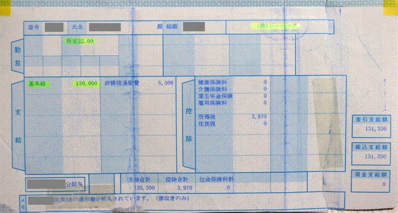 3970엔을 빼고, 13만 1330엔을 실수령했다고 되어 있는 듯합니다. 다만, 해당