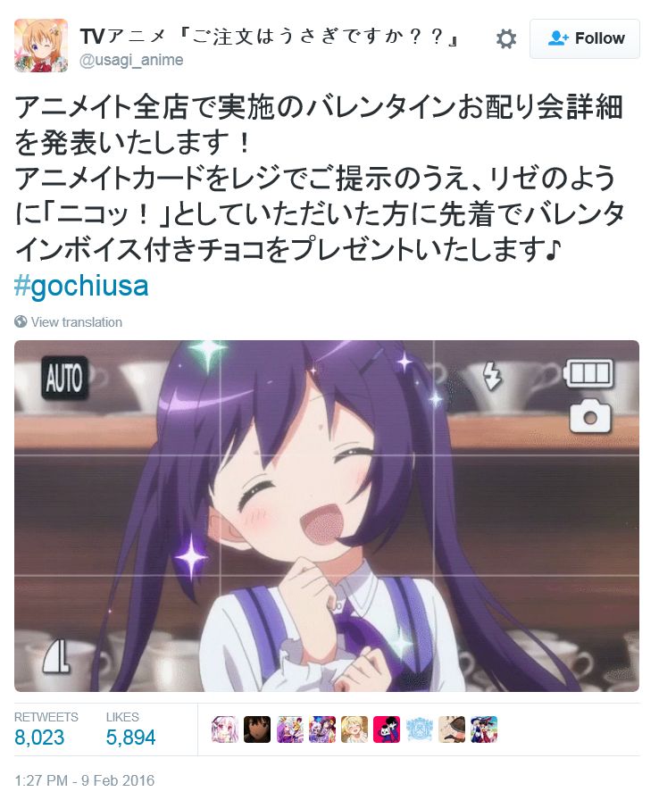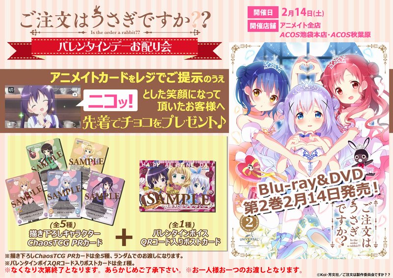애니메이트에서 '주문은 토끼입니까' 발렌타인 데이 이벤트 개최
