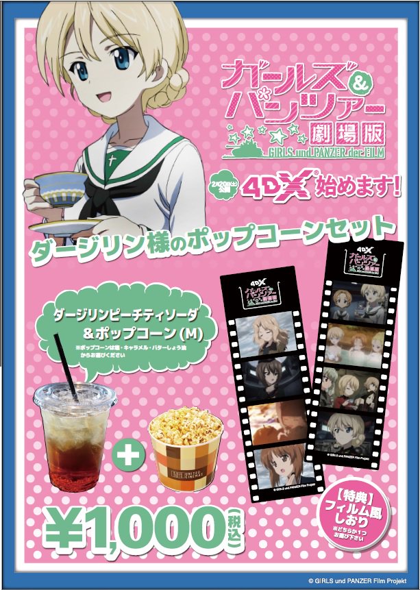'걸즈 & 판처 극장판' 4DX 상영 기념으로, 필름풍 책갈피가 첨부된 팝콘
