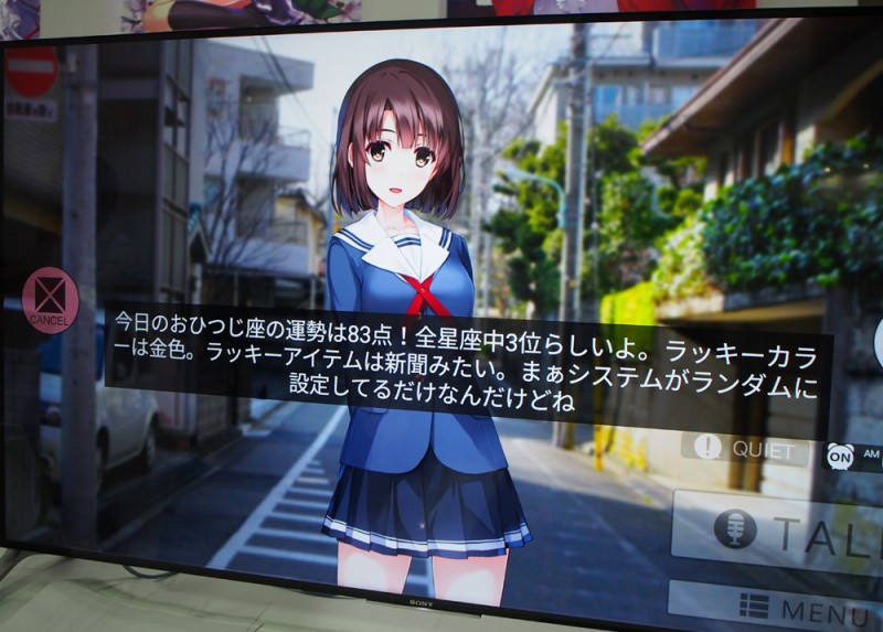 같은 말을 걸면, TV 화면 속의 카토 메구미가 표정과 몸짓을 바꿔가면서 대답을
