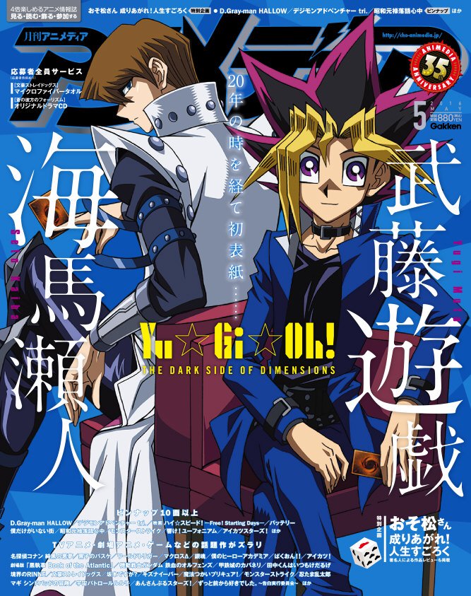 아니메디아 2016년 5월호 표지 그림은 극장판 유희왕이 장식