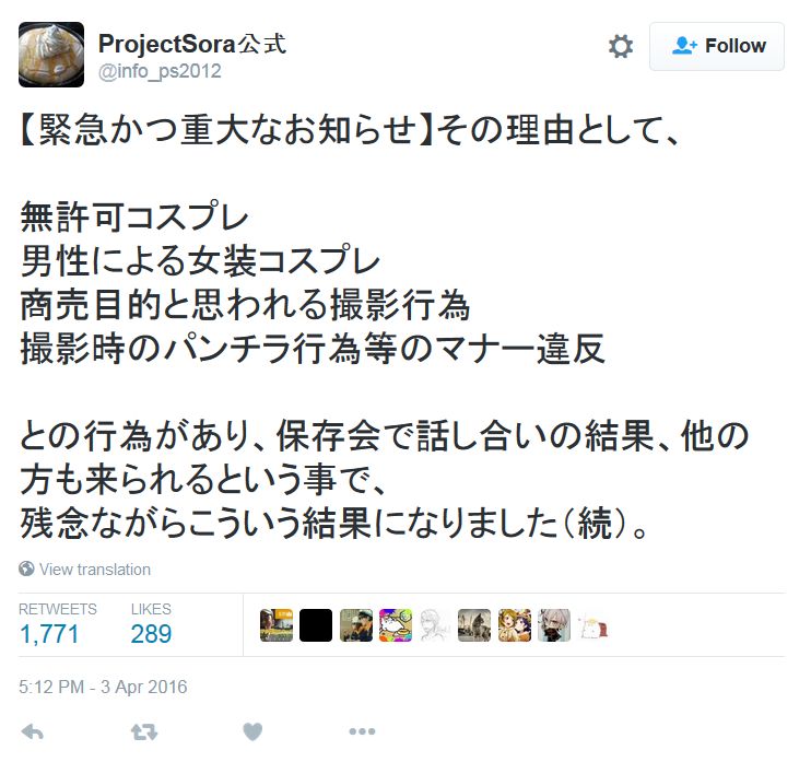 무슨 일이 있었나 했더니만, 무허가 코스프레, 여장 코스프레, 장사 목적으로