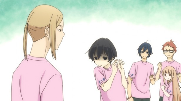 분담하여 모두 즐겁게 일을 하는 가운데, 귀찮은 듯이 작업을 맡지 않도록 오로지 기색을 감추는 데 전념하는 타나카.