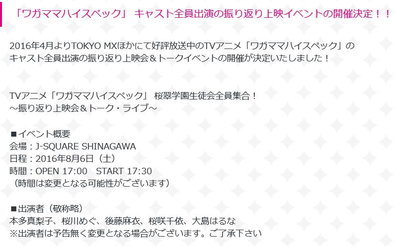TV 애니메이션 '제멋대로 하이스펙'의 복습 상영회 및 토크 라이브 이벤트