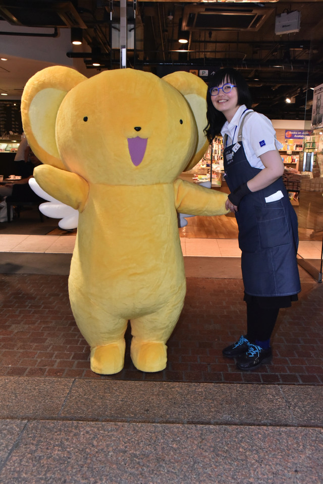 카드캡터 사쿠라 신작 기념, 케로짱 인형옷이 서점에 등장한 모습