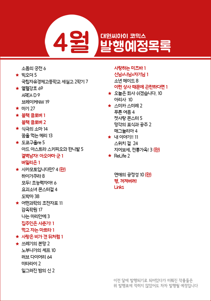 [대원씨아이]* 4월 발행예정 작품목록