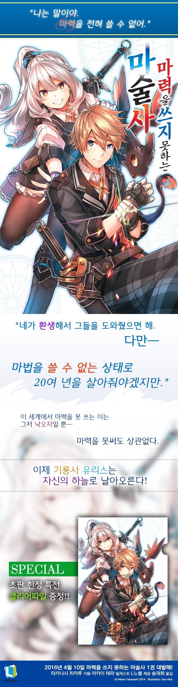 | 도서 | [L노벨] 마력을 쓰지 못하는 마술사 1권[0] | Teixeira | 2016-03-24 13:47 | 3490 | 1 |