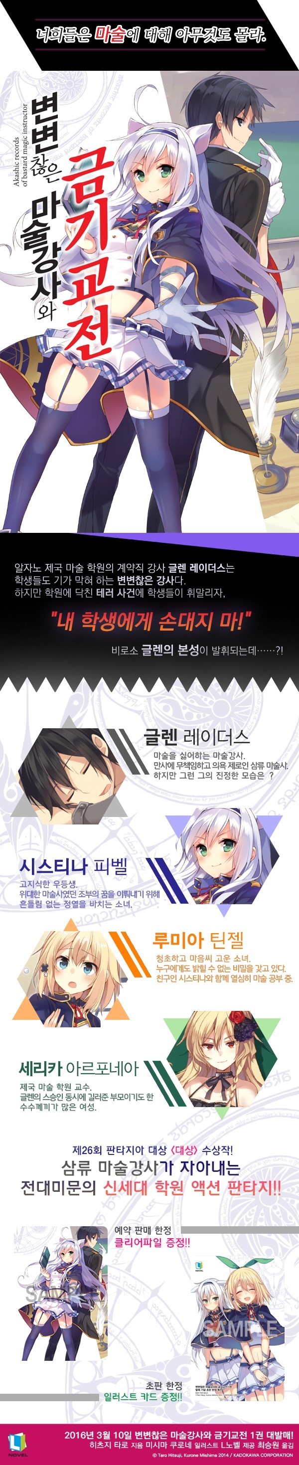 | 도서 | [L노벨] 변변찮은 마술 강사와 금기 교전 1권[0] | Teixeira | 2016-02-22 18:02 | 3125 | 0 |