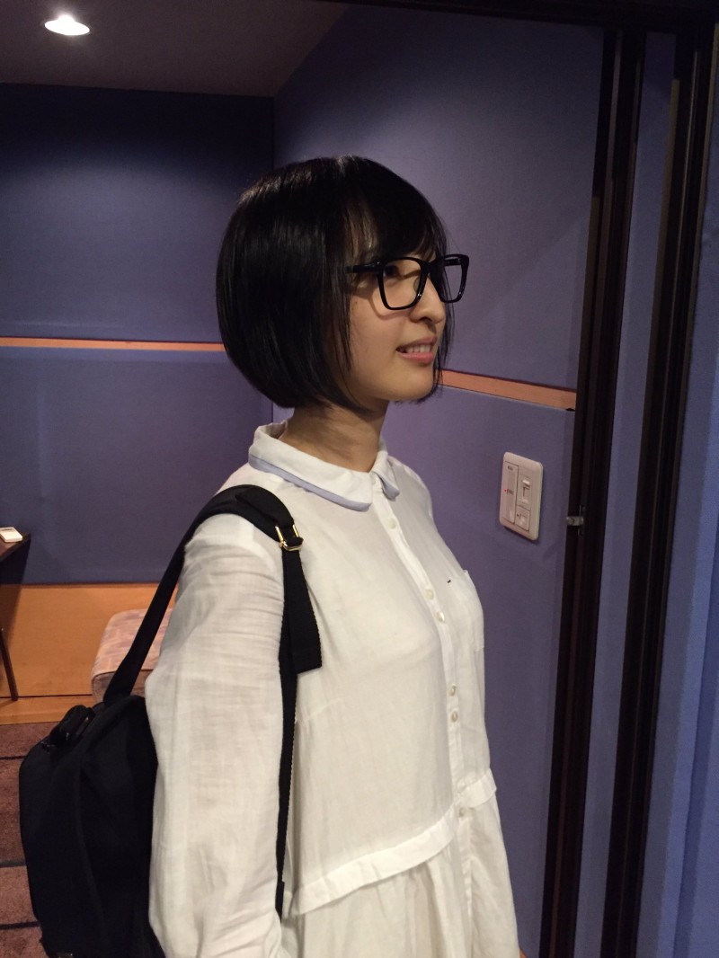 녹음을 마친 성우 '사쿠라 아야네'의 모습인 듯한데요. 안경을 쓴 모습이 인상