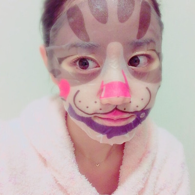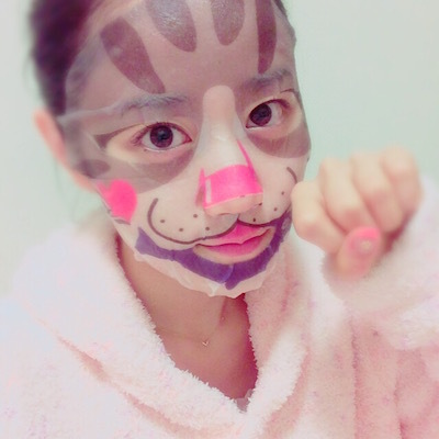 성우 오구라 유이의 사진, 고양이 모양의 얼굴팩을 붙인 모습