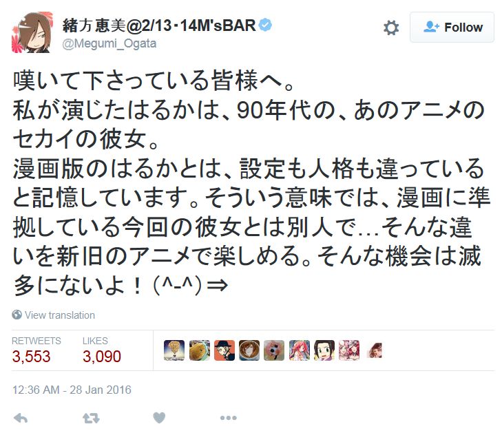 성우 오가타 메구미씨가 자신의 트위터에 올린 글을 통해, 세일러문 크리스탈