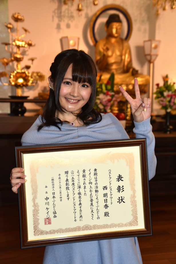 성우 니시 아스카씨의 사진, 베스트 훈도시스트 어워드 2015 시상식에서