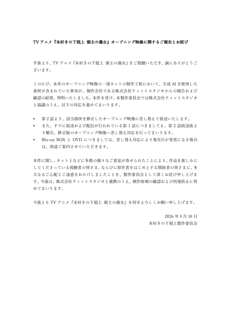 WIT STUDIO에 따르면, 제 1화 오프닝 영상의 일부 컷에서