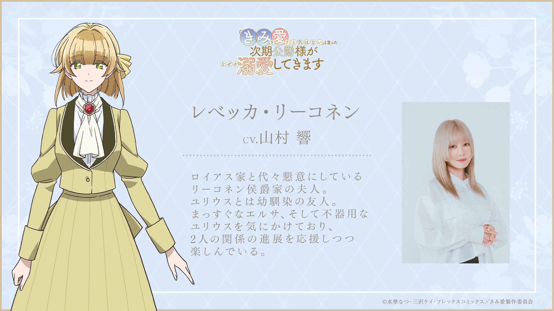 TV 애니메이션 '「널 사랑할 생각은 없어」라던 차기 공작님이 어째선지 제게 푹 빠졌어요'의 추가 캐스팅 발표