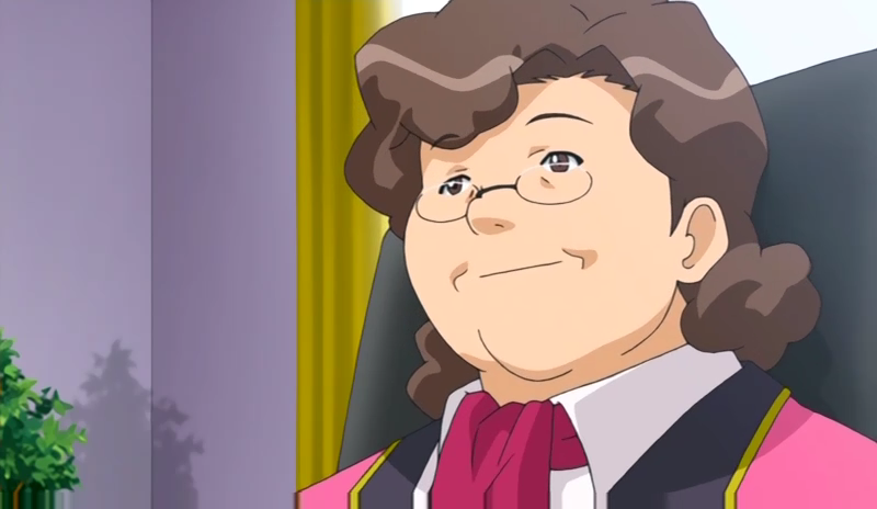 지구연방 대통령의 자리에 앉아있는 중년 여성. 지구와 달의 공존을 꾀하고 있다.