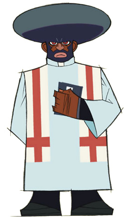 신부로서 팬티&스타킹 자매의 상사. 그리고 게이. 검은 피부에 거대한 아프로파마를 하고 있다. 보통은 비교적 침착한 편이지만, 팬티&스타킹 자매에 대해 격분하게 되면 말투가 거칠어지고 더러워진다. 기본적으로는 정론인 내용인지라 상사로서 상담인이라고 할 수 있으나, 개인적인 면은 역시나 이상한 면도 많다. 팬티&스타킹 자매로 부터는 가터라는 애칭으로 불리고 있다.