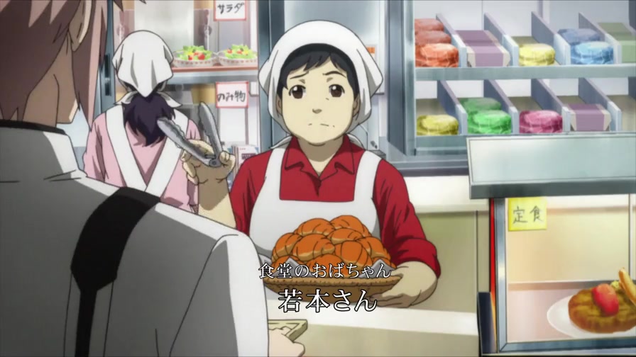 테노지 아스카가 있는 기숙사의 식당 이모. 이름은 와카모토(若木).