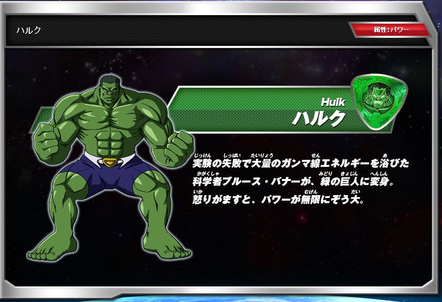 실험의 실패로 대량의 감마선에 노출된 과학자 브루스 배너가 녹색의 거인으로 변신. 화를 내면 파워는 무한증대