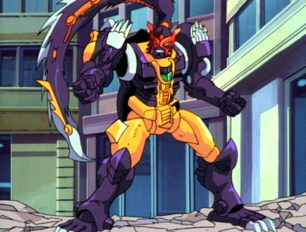 데스트롱거의 개그 캐릭터 3 이다. 이름 그래도 가스를 뿌린다. 그런데, 뒤가 아니고 입으로 뿌린다. 트랜스포머로 변형시 꼬리부분이 머리쪽으로 나와 꼬리로 공격한다. 꼬리는 칼 같이 되어있다.