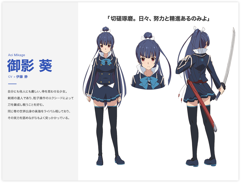 사야가 동경하는 선배로 히나타와 함께 임무를 수행한다. 그녀는 카타나를 사용한다. 그리고 그녀는 몸놀림도 날렵하다.
