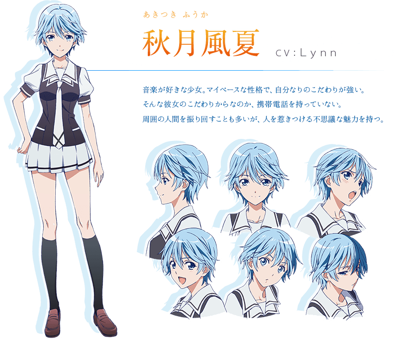 음악을 좋아하는 소녀. 마이페이스 성격인데다 자신만의 고집이 있다. 그런 고집 탓인지 핸드폰을 가지고 있지 않다. 주변 사람을 휘둘리게 하는 일이 많은데도 사람을 끌어당기는 신기한 매력을 가지고 있다.