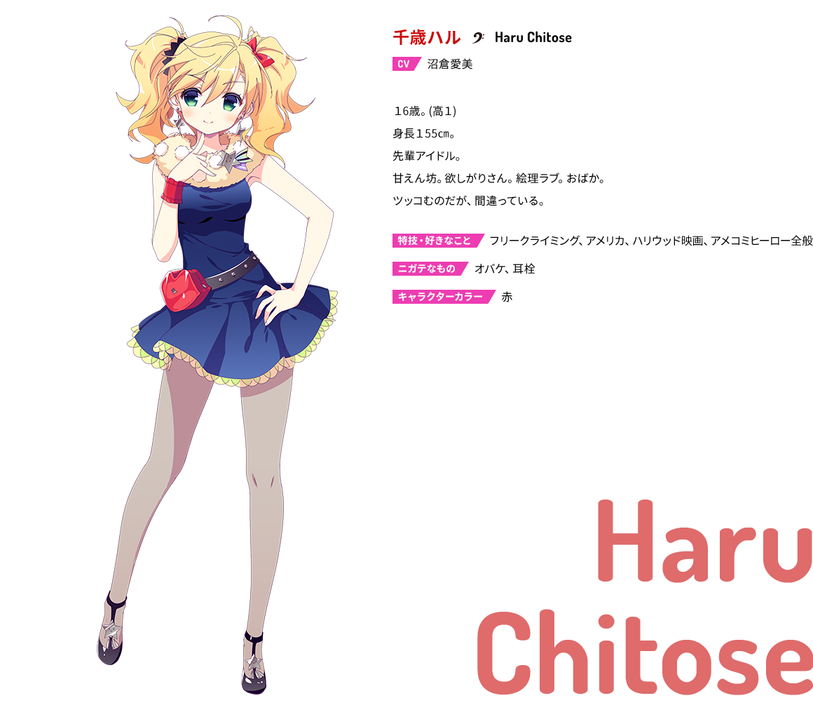 선배 아이돌. 아이돌 유닛 「H☆E☆S」 어리광쟁이. 욕심쟁이. 에리를 굉장히 좋아한다. 바보.