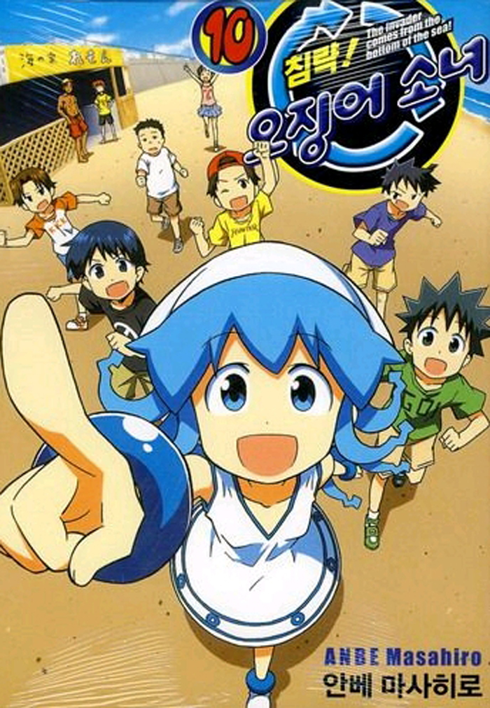 Anbe Masahiro의 만화 『침략 오징어 소녀』 제10권. 오징어소녀가 씨름을…?! 남풍 아저씨와 클라크가 최악의 콤비를 짜다! 오징어 소녀와 키요미가 에이코의 집에서 사나에와 맞닥뜨리다! 오징어 소녀의 침략의 길은 멀고도 험하기만 한데….